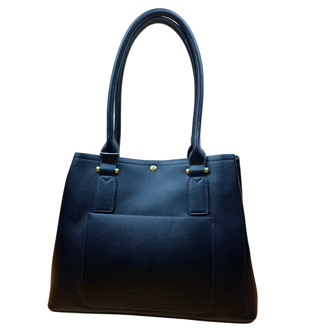 Never be without the things you need! Isabella is a beautiful bag for travel, work, or anytime you need a stylish bag. Easily carry Isabella with the shoulder straps or use the included strap to convert Isabella to a crossbody bag! This bag has gold detailing & closures & an exterior pocket with the brand logo. The interior lining of the bag is suede & there are two pockets. One is located in the middle of the bag and has a clasp closure & is large enough to secure your tablet & the other is located on the wall of the bag and has a zipper closure. Isabella is made with luxury vegan leather.